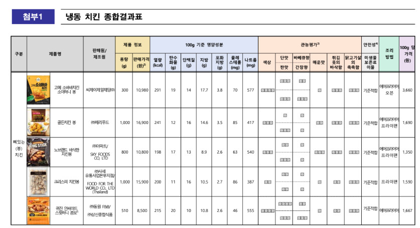 지난해 12월, 한국소비자원에서는 '냉동 치킨 품질 비교' 결과 보고서 (담당자: 김수정 책임연구원)를 발표했습니다.