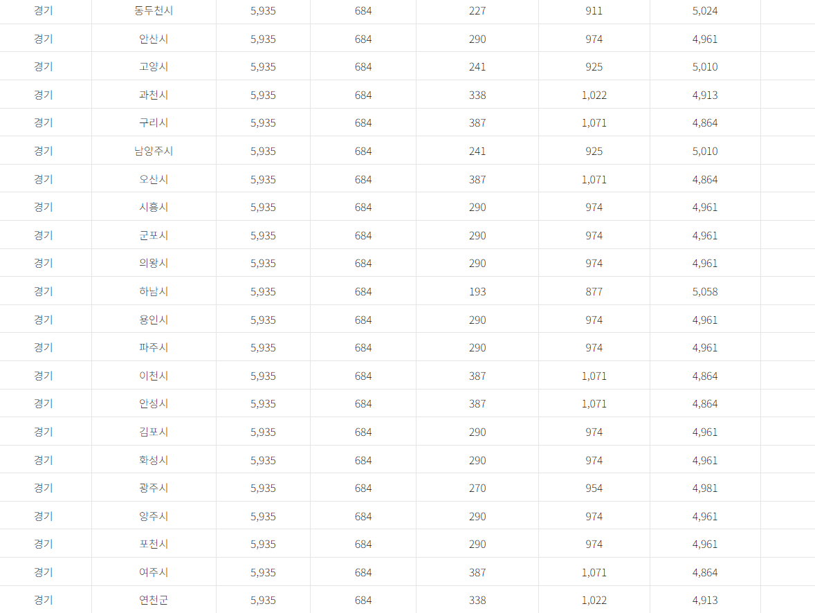 서울특별시에 경우 예상구매가는 5,106만 원이고 인천시는 4,961만 원입니다.