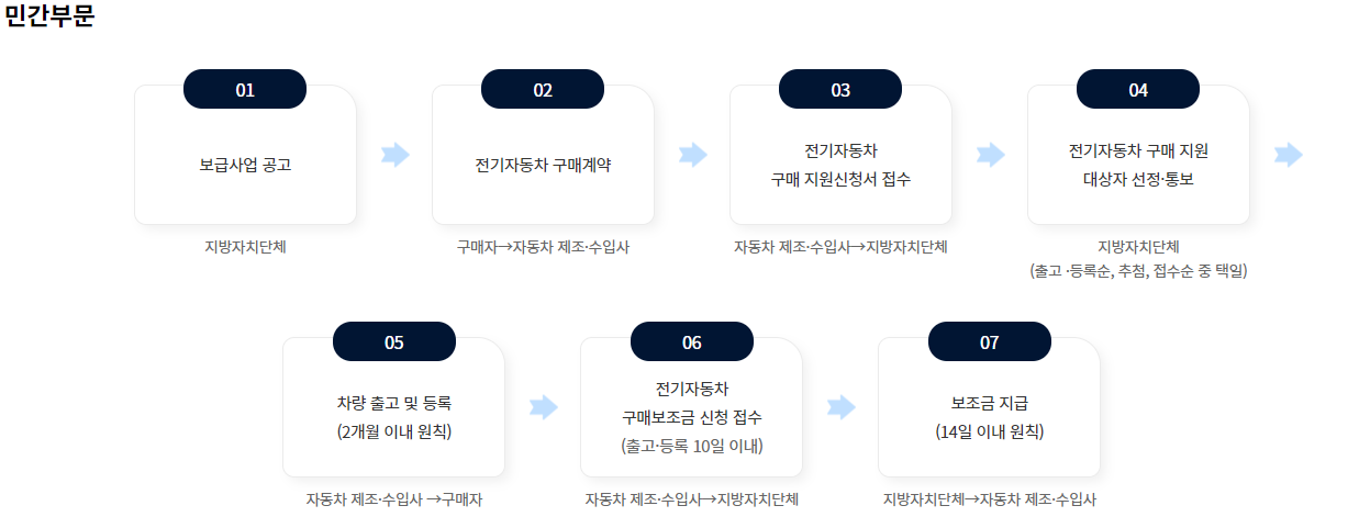 전기차 구매자는 차량구매대금과 보조금의 차액을 자동차 제조수입사에 납부하고, 자동차 제조수입사가 해당 지방자치단체에서 국비보조금과 지방비보조금을 수령하는 형식입니다.